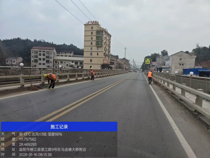 养护人员深入一线,聚焦桥梁、急弯、陡坡、交叉路口等重点部位,对辖区国省干线开展拉网式巡查。针对排查出的问题,迅速组织力量进行整治:累计补划交通标线2000余平方米,修复破损护栏124米,修补路面坑槽100余平方米,清理泗里河桥、马迹塘桥等8座重点桥梁的泄水孔及桥面孔洞,并完成11处标志标牌等交通安全设施的修复更新,切实提升道路本质安全水平。
