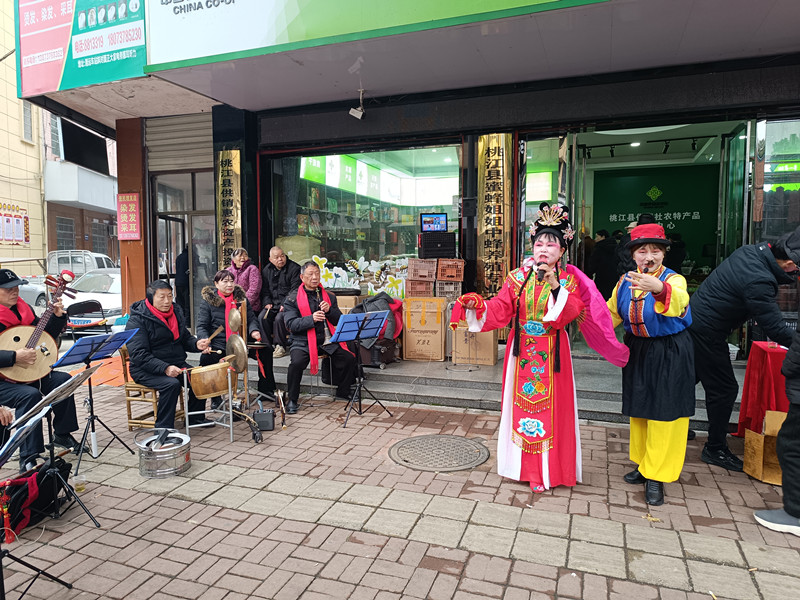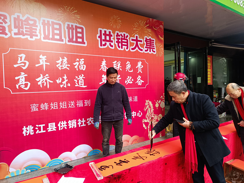 1月24日,县供销社农特产品展销中心门前人头攒动、笑语欢歌、墨香四溢。由桃江县本地网红“蜜蜂姐姐”杨朝辉联合县供销社举办的“蜜蜂姐姐、供销大集”年货节火热启动,免费送春联、特色年货展销、地花鼓表演一同推出,现场年味十足,人气爆棚。