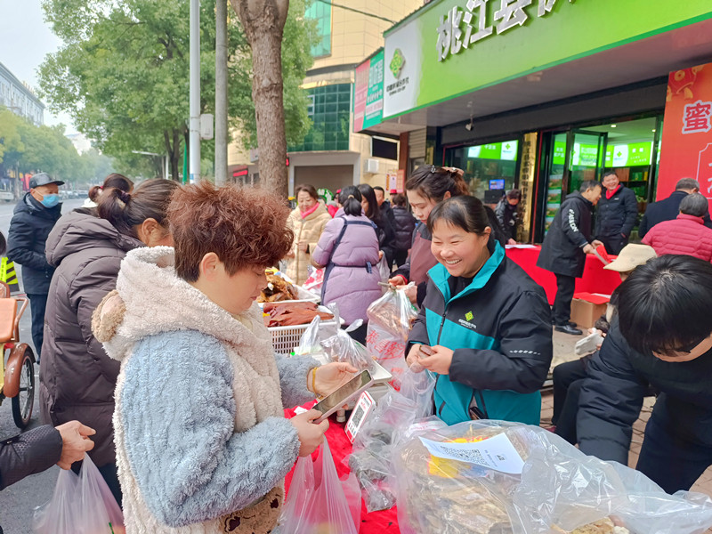 本次活动,是在“惠购三湘”主题消费季活动背景下筹划推出的,在县供销社、桃花江文化研究会、新媒体协会的积极帮助下,结合文化、娱乐的综合体验,通过打造消费新场景,拉动农历春节节前消费,促进本地特色农产品“出圈”入户。现场最吸睛的当数“蜜蜂姐姐”杨朝辉,她店里店外忙个不停,一边在展台前热情推介“腊味套餐”“健康粗粮食品”等年货,一边讲述特色农产品背后的助农故事。 “我们不仅要帮乡亲们把好产品卖出去,还要创新模式拉动消费!”杨朝辉说。