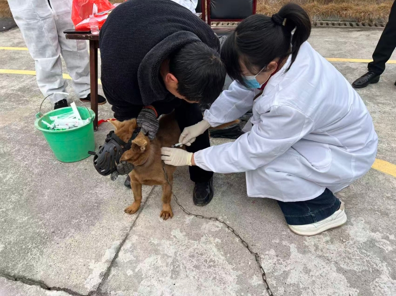 在临时设立的集中免疫接种点,乡农业综合服务中心防疫人员为前来咨询的养犬群众提供免费咨询服务,并严格按照免疫规范为30余只家犬进行了狂犬病疫苗接种。现场还设置了犬只登记台,为未办理养犬登记的村民提供登记通道,同步采集犬只品种、免疫史等信息,为后续全乡犬只免疫管理奠定基础。村民李大爷高兴地说:“以前总担心狗咬人会得狂犬病,现在政府上门打疫苗,还教我们怎么预防,这下放心多了!”