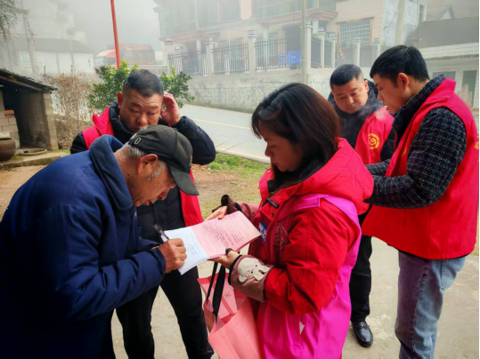 连日来,全镇镇村干部、网格员、党员志愿者组成宣讲队伍上门宣传,逐村逐组走访群众,不仅发放《烟花爆竹禁限放告知书》等宣传资料,更用通俗易懂的方言解读政策细则,重点说明违规燃放的处罚标准,同时耐心解答群众关于“传统节日燃放规范”“环保替代方式”等疑问。