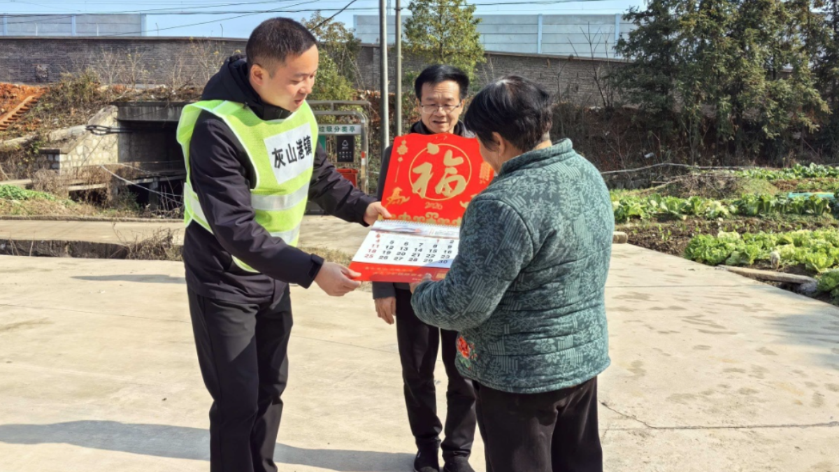 元旦刚过,灰山港镇铁路沿线的村庄迎来一批特殊的“礼物”——新年日历。这是平安法治办与村(社区)工作人员联合开展的一场铁路安全保障宣传活动。活动期间,他们通过发放新年日历宣传安全知识,并同步排查沿线安全隐患。