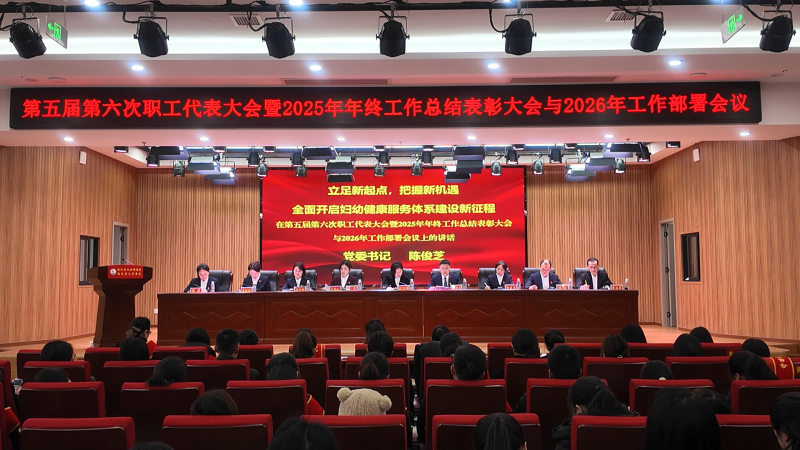 1月30日下午,县妇幼保健院第五届第六次职工代表大会、2025年年终工作总结表彰大会暨2026年工作部署会议在院六楼会议室召开。医院党政领导班子成员及160余名干部职工参会。