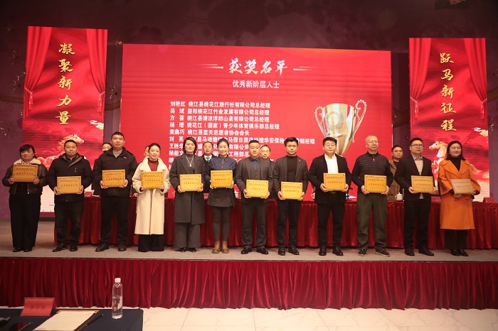 会上,县新阶联通报年度财务收支情况,宣读表彰决定,授予桃江久通锑业等10家单位“先进单位”称号,刘艳红、王胜华等12人“优秀新阶层人士”称号,并现场颁奖。
