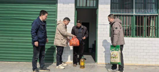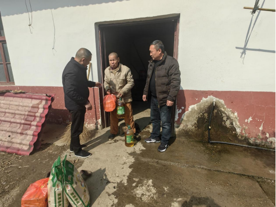 在鲊埠回族乡鲊埠社区帮扶村,慰问组与帮扶对象残疾人及家属促膝交流、共话家常,关切询问他们身体状况和生活情况,叮嘱他们一定要保重身体,注意防寒防冻和安全用电用火,并为他们送上米、油等过年物资。