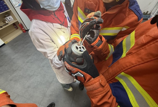 消防救援人员抵达现场后了解,被困者当天在清理水槽时,右手手指不慎伸入下水过滤器,被紧紧“咬”住无法拔出。由于长时间被卡,血液循环受阻,手指已出现明显红肿,情况紧急。为避免二次伤害,消防员仔细观察卡手结构后,制定精准破拆方案。救援人员先用剪刀对过滤口周边较薄区域进行小心剪开,随后利用打磨机对卡手部位进行精细切割。经过近十分钟紧张救援,女子的手指被成功移出,所幸除红肿外无大碍。