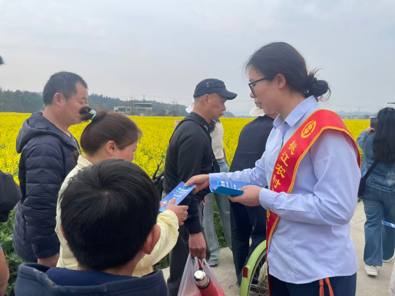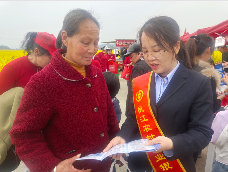 3月14日,桃江农商银行组织志愿服务队走进三堂街镇第四届乡村文化旅游活动现场,将征信知识、金融政策送到村民与游客身边,让金融服务在春日花海中更有温度。