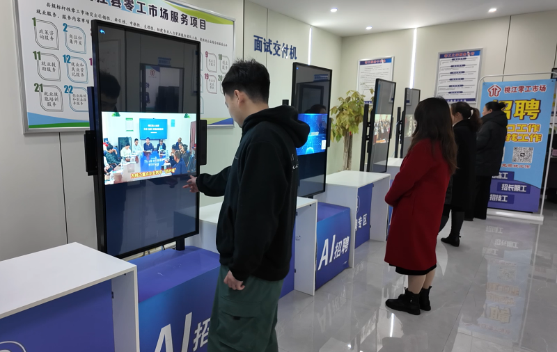 近年来,桃江县高标准建成智能化零工市场及就业驿站,搭载AI就业交互机等智能设备,整合28项就业服务功能,构建起覆盖城乡、智慧高效的公共就业服务体系,精准破解灵活就业群体“求职难”、企业“用工难”双向痛点。