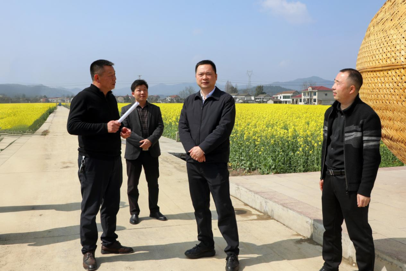 周登高首先来到湖莲坪村,实地察看湖莲坪文创园与油菜花海核心基地。该村依托优质区位优势,大力推进农文旅融合,2024年成功创建省级四星级旅游乡村,正积极争创国家3A级旅游景区。周登高认真听取相关负责人介绍,详细了解该村集体经济发展等情况,对湖莲坪村通过“花田+风筝+文创+龙舟”深度融合带动村民增收致富的做法给予肯定。