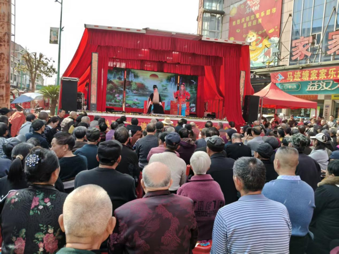 锣鼓喧天庆华诞,戏韵流芳满古镇。3月13日,桃江县戏剧家协会马迹塘分会成立一周年庆典在家家乐超市广场盛大启幕。近千名戏迷闻声而来,共同见证这场传统戏曲与古镇烟火交织的文化盛宴。