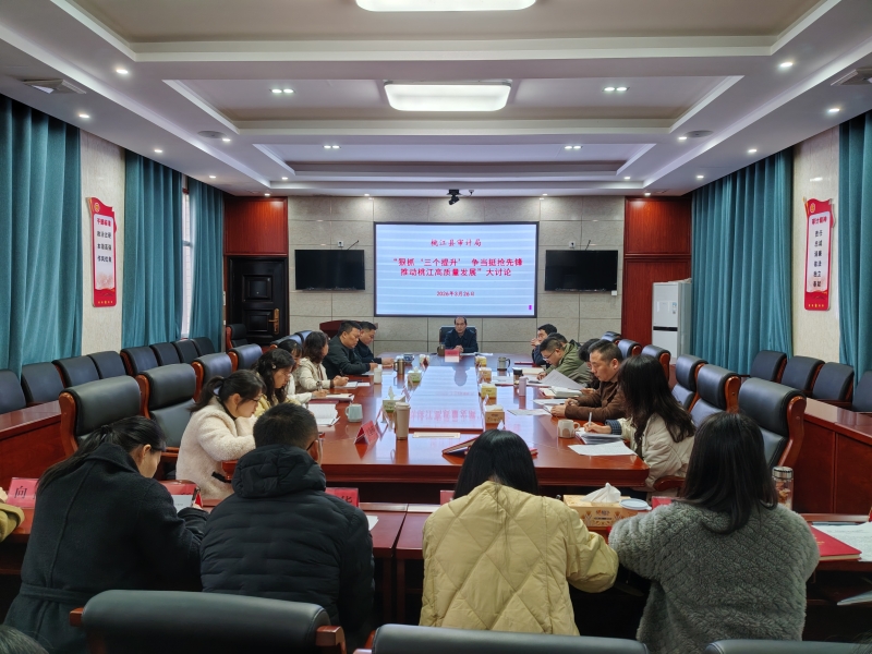 近日,县审计局组织全局干职工开展“狠抓‘三个提升’,争当‘挺抢’先锋,推动桃江高质量发展”专题大讨论,聚焦作风查摆、履职提质、成果转化,推动作风建设走深走实。