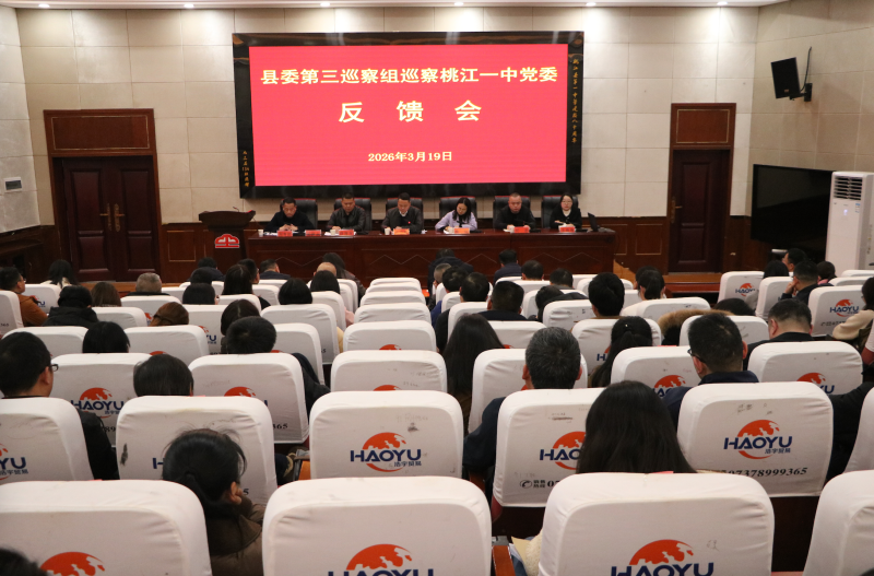 2026年3月19日下午,县委第三巡察组巡察桃江一中党委情况反馈会在桃江一中道德讲堂召开。