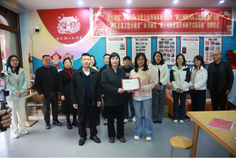 此次交流活动是桃江刻纸“出海”的延续与深化。2025年10月,由北京航空航天大学教授颜新元策划、牵线、筹办的“桃江刻纸晋京展”,让60余幅桃江刻纸精品亮相北京师范大学京师美术馆。加拿大温哥华“北京海外侨友会”会长韩惠欣观展后,对桃江刻纸艺术惊叹不已,倾心推动桃江刻纸非遗跨洋传播。2026年2月14日,由她发起的“温哥华春聚・共赏桃江刻纸风华”视频连线活动成功举办;2月23日(温哥华时间正月初六),桃江刻纸方阵亮相第 52 届温哥华华埠春节庆会,惊艳海外观众。