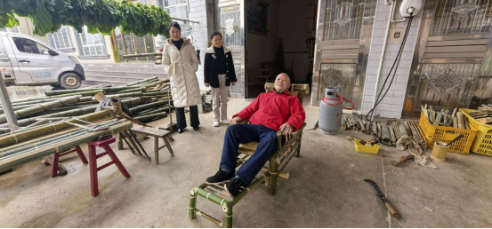 “竹子用火烘烤后柔韧性更强,弯折不易开裂,这是老祖宗传下的手艺诀窍。”熊乐丰一边组装拖床一边介绍,这款睡椅扶手可放置杂物,搭配可抽拉拖床,夏日乘凉、午后小憩皆宜,凭借轻便舒适的特点,深受客户喜爱。