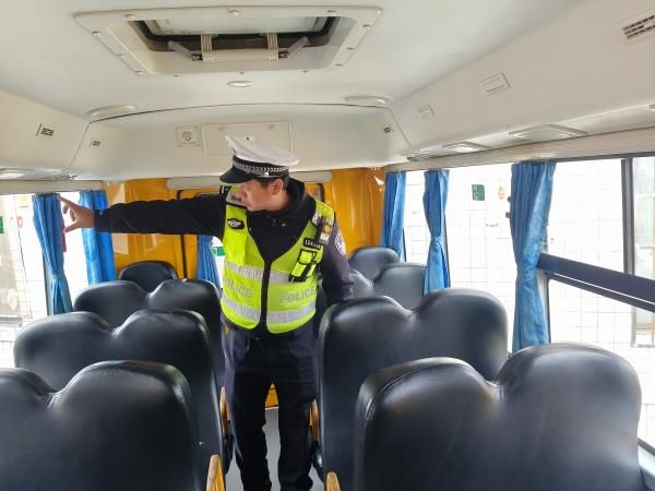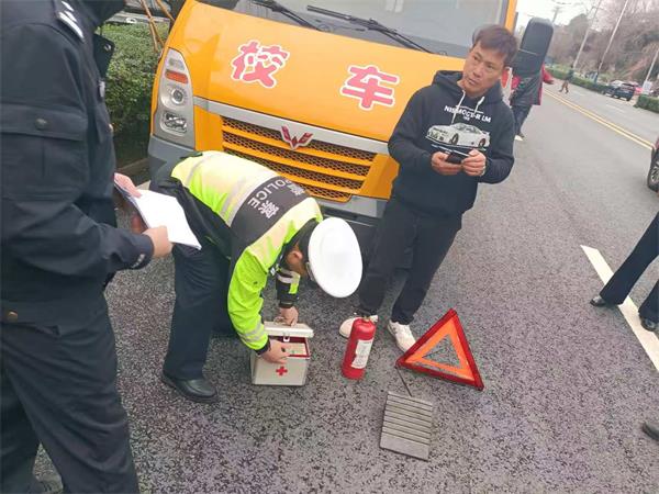 “师傅,你这车的安全锤位置有点偏,学生紧急情况下不好取用,得调整到显眼易拿的地方。”3月2日上午,桃江县公安局交通管理大队三中队民警来到大栗港镇校车集中停放点,逐一登车对车辆开展安全“体检”,指尖划过安全带、灭火器、急救箱等设备,仔细排查每一处安全隐患,为即将到来的春季开学保驾护航。