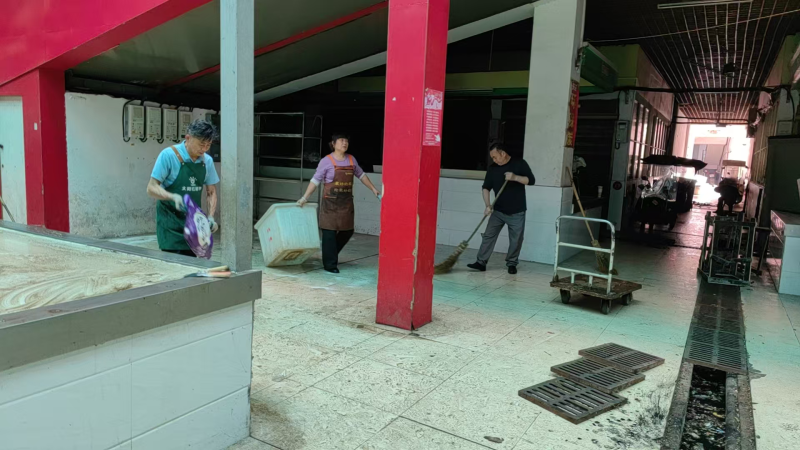 同时,执法大队联合应急、消防等部门,对新农贸市场进行了清理清污。共清运积存垃圾1.3余吨,高压冲洗市场区域800余平方米,全面消除卫生死角与油污顽疾,排查并整改消防隐患。新农贸市场焕然一新。