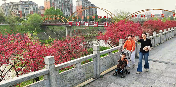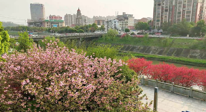 漫步在獭溪河沿江风光带,粉红的桃花、白嫩的樱花与清澈的河水、现代的建筑相映成趣,市民穿行其间,仿佛置身于城市花海公园。这片醉人春色,是桃江县持续推进城市绿化美化、建设生态宜居家园的生动缩影。