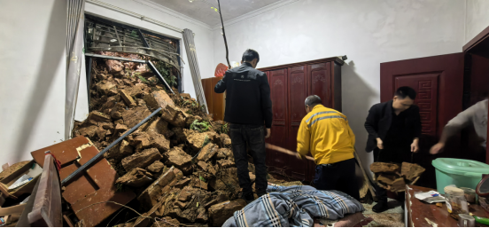 11日8时,记者在现场看到,床铺被部分岩石挤压覆盖,一楼楼梯间的洗衣机、卫生间等设施均遭不同程度损毁。镇村干部第一时间赶赴现场,组织人员清理落石、设置警示区,严防次生灾害发生。