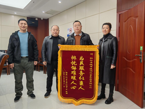 近日,桃花江镇政府党建办干部与桃花江社区党总支负责人专程来到县城投集团,将一面写有“为民服务似亲人 排忧解难暖人心”的锦旗送到工作人员手中,感谢集团解决该社区居民“停车难”的问题。