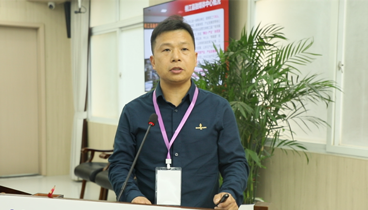 县融媒体中心党组书记、主任、总编辑何俊强在会上分享桃江融媒在县域媒体融合道路上的探索与成效 莫斌 摄