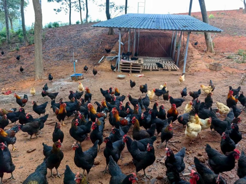 沿林间小道步入毛家桥村,史嗲嗲农场的百亩山林间,赤松茸与羊肚菌正借春雨破土而出。“菌菇不与人争粮、不与粮争地,特别适合林下种植,一亩林地一季能产两千斤左右呢!”农场负责人史定福笑着算起账来。借助县里“竹旅文体康”政策东风,他探索出“果-菌-禽”立体循环模式,百亩山林实现“一地三用”,年产出菌菇7万余千克、散养跑山鸡1.8万余只,实现了经济效益80余万元,让林下经济成为农户增收的“绿色银行”。