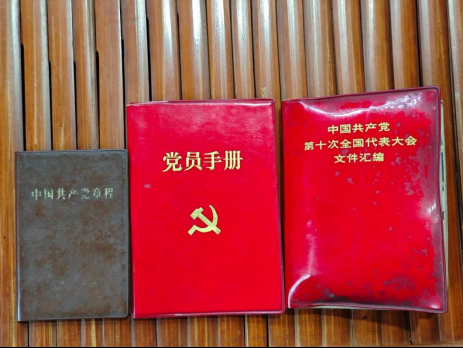 得知慰问组前来探望,老人精神格外爽朗。她让家人扶自己坐起来,然后慢慢打开了一只陈旧的木箱。箱子里没有值钱的东西,却是一叠叠用红布包好的老物件:泛黄的党员手册、旧版的《中国共产党章程》《党的基本知识》《论共产党员的修养》等资料。这些书籍纸张已然发脆,边角也微微卷起,却被老人整理得整整齐齐。
