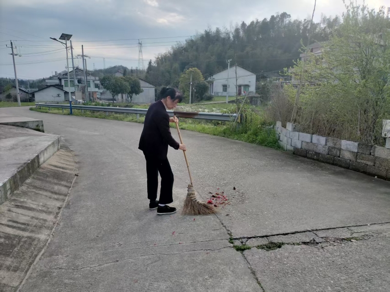 3月的鸬鹚渡镇千工坝村,油菜花开得正盛。天刚亮,村道上就响起了扫帚声。70岁的熊谷华招呼着身后一群头发花白的老嗲嗲、老奶奶,开始了新一天的忙碌。