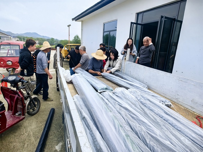 4月8日下午,县农业农村局在三堂街镇郭家洲村现场向种粮大户、合作社代表和当地乡亲免费发放全生物降解地膜,助力农业绿色生产。