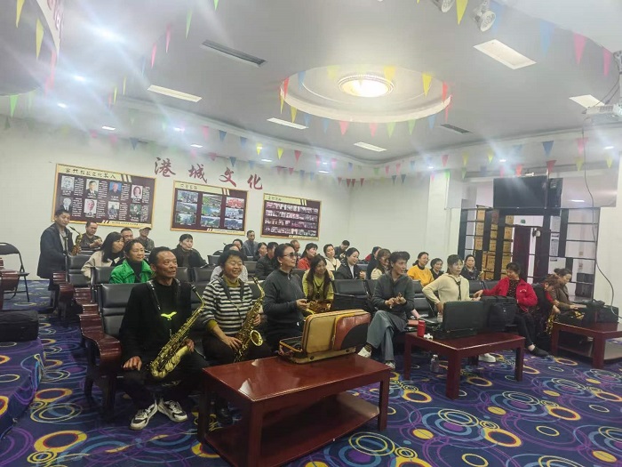 4月8日夜晚六点半,灰山港镇文化站的二楼灯火通明。萨克斯浑厚悠扬的旋律流淌而出,几十位年龄各异的学员正全神贯注。站在他们中间的,是头发已花白的陈源益、苏映霞夫妇。这样的公益音乐课堂,他们坚持了三十余个春秋。