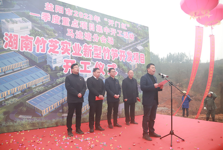 另外三个开工的分别是桃江经开区壹鑫光学薄膜生产项目开工现场、马迹塘镇竹笋精深加工项目开工现场和鸬鹚渡镇鑫茂竹产业加工项目开工现场。