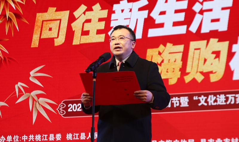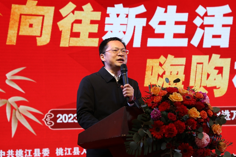 向荣在启动仪式上致词。他指出,举办本次消费购物节,既是县委、县政府贯彻落实中央、省、市实施扩大内需战略的工作举措,又是提振市场信心、激发消费活力、增进民生福祉、促进创业就业的具体行动,对推动桃江县域经济高质量发展,增强人民群众获得感、幸福感具有重要意义。