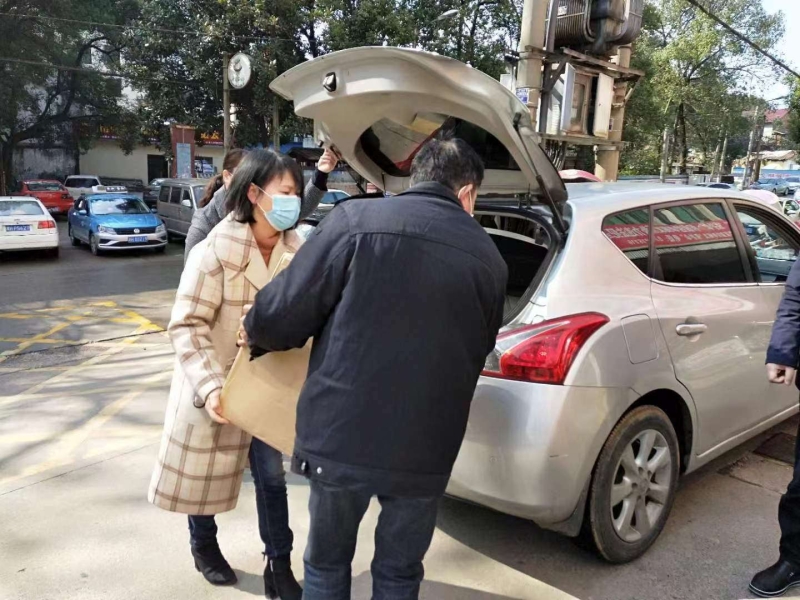 曾菊辉为抗疫一线的工作人员送防疫口罩 邓婧 摄