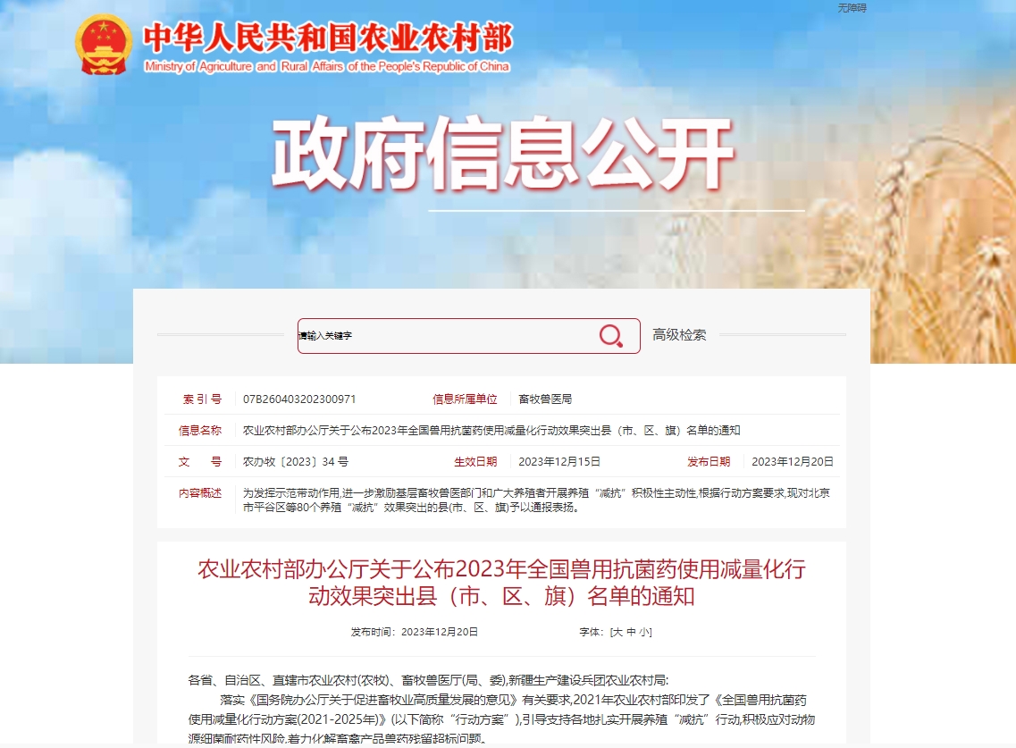 12月20日,从农业农村部传来消息,桃江荣获全国兽用抗菌药使用减量化行动效果突出县,成为80个养殖“减抗”效果突出的县(市、区、旗)名单之一。湖南仅有三个县市上榜,分别为桃江县、衡阳县、浏阳市。
