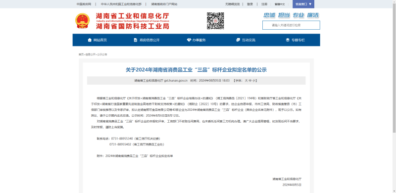 湖南省工业和信息化厅公示