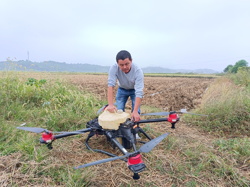 这些天,在长沙卖大米的丁良每天都要匆匆赶回家,驾着他的“三蹦子”、拉着植保无人飞机奔向油菜田,急着去给他的客户新播种的油菜打封闭药。