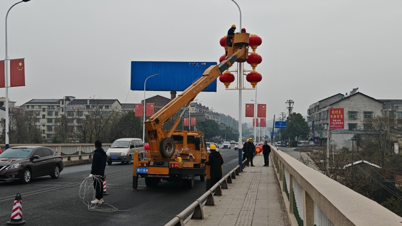 据了解,县城管执法局已在迎宾路县政府周边,各城市桥梁两侧安装大红灯笼840多个,其他主要街道将在农历小年前完成安装。同时,该局加强了桂花园小学人行天桥、七里村立交桥以及多处口袋公园的灯光小品亮化改造。