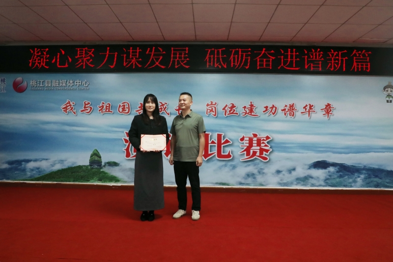 在中华人民共和国成立76周年之际,9月26日下午,桃江县融媒体中心“我与祖国共成长 岗位建功谱华章”主题演讲比赛在中心五楼会议室隆重举行。22名来自新闻部、新媒体部、影视部、机关等不同部门的青年骨干齐聚一堂,用激昂的演讲礼赞国家发展成就,诉说扎根岗位的初心与担当。