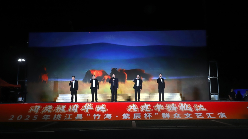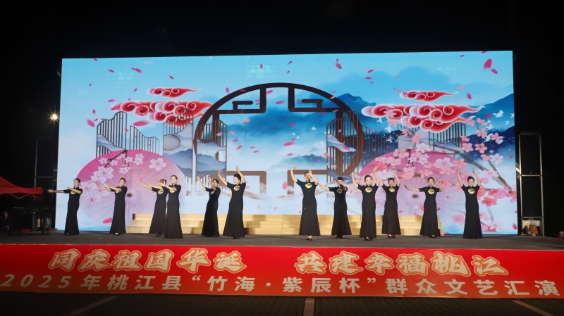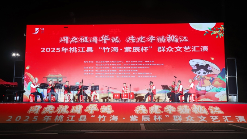 9月29日,“同庆祖国华诞 共建幸福桃江”2025年桃江县“竹海·紫辰杯”群众文艺汇演在桃花江竹海景区游客中心前坪如期上演。由桃江县新时代文明实践中心、县文旅广体局等单位指导,县文化馆、县遇见美文化旅游投资有限公司主办的文艺盛宴,以多元节目为祖国76华诞献上深情祝福,拉开了桃江国庆系列活动的序幕。
