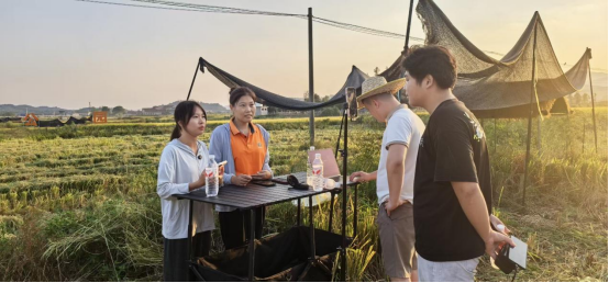 在当天的收割现场,公司“高贵爱农”直播团队正在对稻鸭生态稻进行现场直播,两位主播围绕稻鸭生态稻的生态环境、泉水灌溉、生态种养向网友介绍稻鸭生态米的种植模式,引来不少网友的围观与关注。