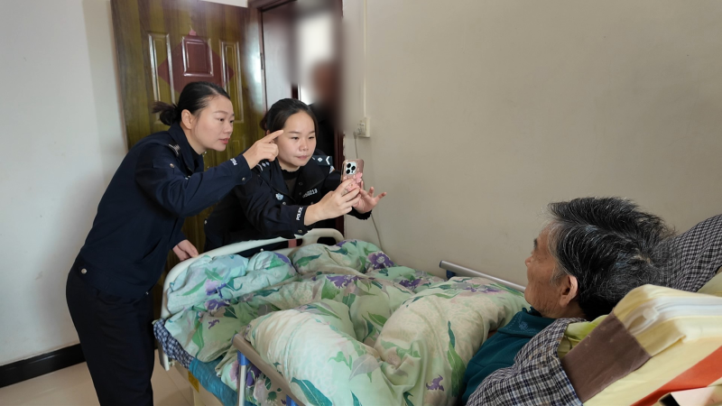 在病床前,工作人员小心翼翼地将龚奶奶扶起,调整到合适的姿势。由于病人身体虚弱,采集符合标准的人像和指纹信息存在一定难度。工作人员极富耐心,一边轻声安抚,一边细致操作,反复尝试寻找最佳角度和方式。采集指纹时,他们耐心地帮助龚奶奶逐个手指按压,直至获取清晰的指纹信息。经过近一个小时的努力,终于成功完成了身份证办理所需的所有流程。亲属莫先生感激地表示:“太感谢他们了,为我们家解决了一个大难题,上门服务这个便民措施真的特别好!”