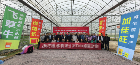 现场评价结果表明,该项目已取得阶段性重要成果。通过使用项目研发的除草剂省力化新制剂产品,既能省工减药,又能保障对水稻稗草、千金子、异型莎草等主要杂草的防效达到90%以上,且对水稻安全。通过使用新型助剂结合植保无人机施药,在农药减量20%的条件下,对水稻二化螟等虫害的防效优于常规防治区,达到了农药减量增效的目的。通过精准匹配新药剂、新助剂与无人机作业参数,集成应用了水稻主要病虫草害全程轻简化防控技术模式,示范现场随机选择代表性田块进行抽样测产,示范区水稻比常规防治区增产19.2%,达到了轻简化防控和增产的目的。