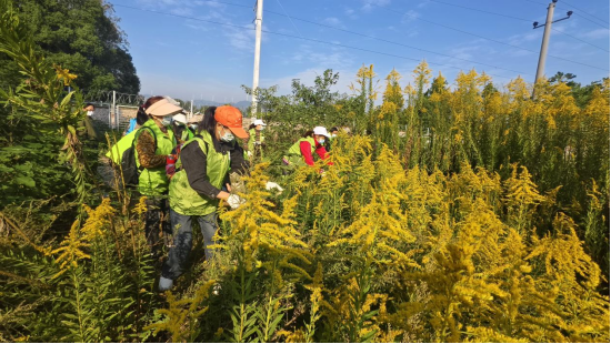 对加拿大一枝黄花进行清除 邓宇婷 摄