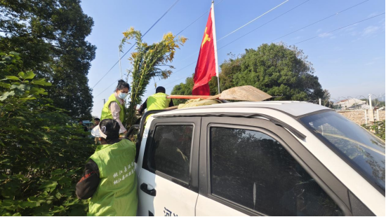 行动中,20名志愿者统一佩戴着手套和口罩,徒手掰断已经抽穗开花的植株顶端部分,用锄头将植株根系完整挖出。随后,金黄色的花穗被分段装入纤维袋,人工传递到环卫车上,最后送到指定地点进行无公害销毁。“这片加拿大一枝黄花长势旺盛,大部分已经开花,必须赶在11月中下旬种子成熟前彻底清理。”桃江县环保志愿者协会灰山港分会会长刘一波表示,“之前我们每年都来清理,去年因故未到,今年就发现繁殖面积扩大了好几倍。我们必须抓紧时间。”整个清理过程高效有序,当日上午有效清理约三十平方米。后续,当地村委还计划使用除草剂和根部腐烂药剂对这片加拿大一枝黄花繁殖地进行跟踪治理。