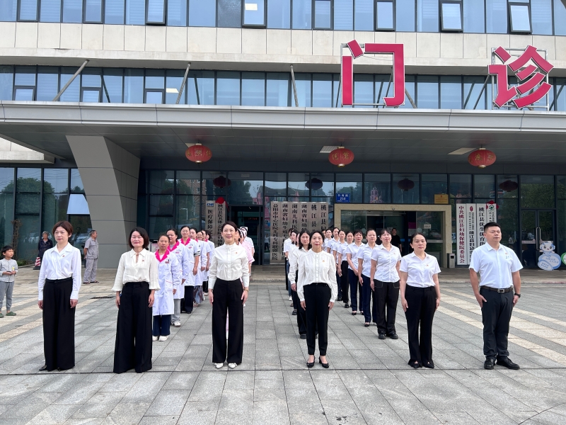 10月1日上午8时18分,县妇幼保健院在院前广场举行国庆升旗仪式,庆祝中华人民共和国成立76周年。