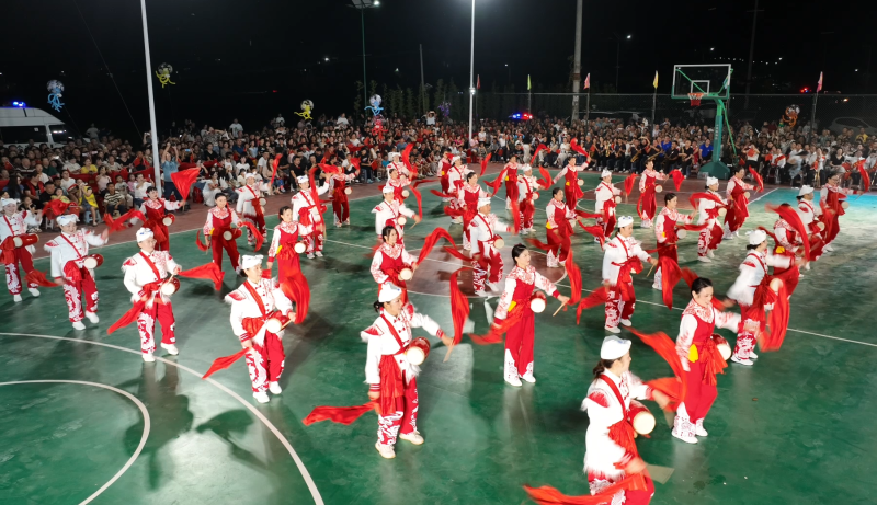 庆典表演环节,传统文化与体育热情碰撞出耀眼火花。锣鼓舞率先登场,鼓手们节奏铿锵,红绸随舞姿翻飞,将热闹氛围拉满;踩高跷艺人踏木跷灵活穿梭,时而摆出趣味造型,时而与观众互动,引得笑声与喝彩声交织;非遗项目“马迹塘故事”惊艳亮相,艺人们以精妙造型与娴熟技艺演绎经典,让传统文化魅力在庆典中绽放。