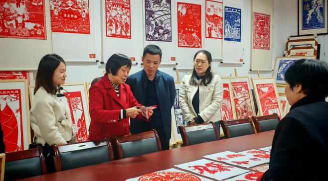 调研组首先走访了市级非遗项目桃花江剪纸活动中心,现场观摩了以桃江风貌与民俗为主题的剪纸作品,详细了解党建引领非遗传承的实践路径。随后,调研组走进“美在金秋”老党员之家,查看功能设施配置情况,与老干部面对面交流,实地感受文体活动开展氛围。