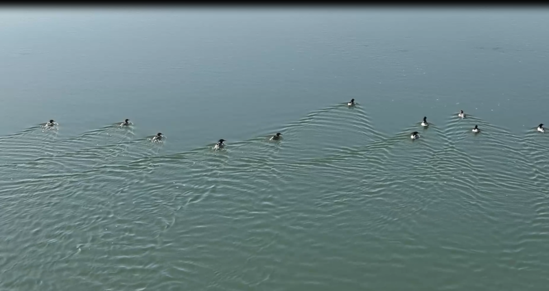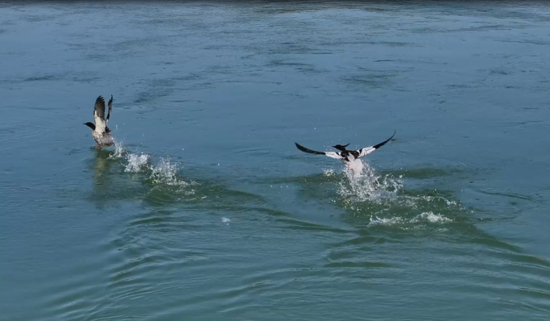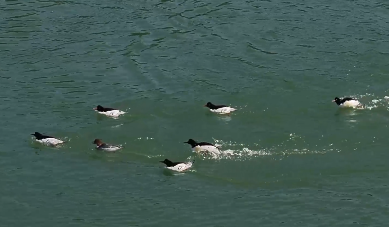 近日,桃花江羞女湖湿地公园发现20多只被称为“鸟中活化石”“水中大熊猫”的中华秋沙鸭。江水中,它们或嬉戏、或飞翔、或捕食……形象憨态,与秀美资江形成一幅自然和谐的画卷。