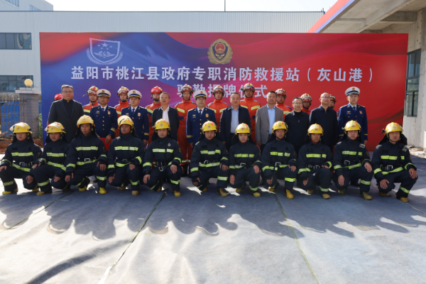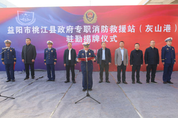 11月27日,益阳市桃江县政府专职消防救援站(灰山港)驻勤揭牌仪式在灰山港镇举行。市消防救援支队支队长伍秋生、副支队长陈平生,桃江县委常委、常务副县长熊跃明出席仪式并致辞,相关单位负责人及指战员代表参加仪式。