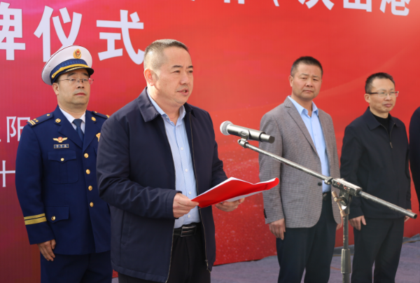 伍秋生支队长与熊跃明常务副县长共同为灰山港政府专职消防救援站揭牌,并参观了营房设施与车辆装备。