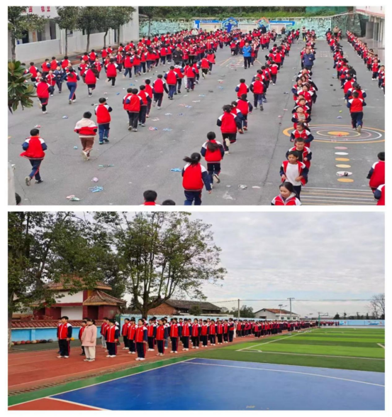 作为一所农村九年一贯制学校,兰天希望学校将阳光大课间活动扎实纳入每日课程体系。通过有机结合跳绳、足球、篮球及乡土特色地坪游戏等项目,确保学生每日体育锻炼时间充足,有效落实国家“双减”政策,促进学生全面发展。为彻底改变传统课间操的单一模式,该希望学校创新构建了“基础+特色+自主”的活力大课间模式。整个活动流程涵盖有序入场、花样跑操、军事化队列训练、全员素质操、分组活动及安静退场等环节。操场上,18个班级方阵动作整齐划一,口号声震天。有的融合传统武术操,有的进行趣味体能游戏,将体育锻炼与传统文化、艺术审美及团队协作深度融合,真正让“五育并举”从理念走向实践。
